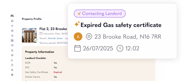 Avoid costly fines or disputes. Alfie tracks EPC, EICR, and gas safety dates, sends alerts, and even arranges renewals automatically